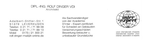 Herr Dipl. Ing. Rolf Dinger verfügt über eine große Erfahrung als Sachverständiger für Schäden an